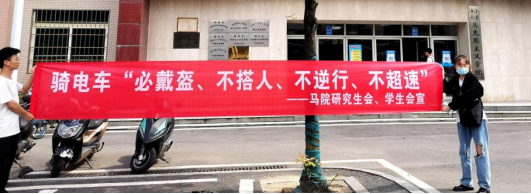 为促进平安校园建设,加强员工安全教育,倡导遵守交通规则,伟德victor1946官网登录研究生会、员工会组织开展了“出行从‘头’开始,平安幸‘盔’有你”的随机采访活动,力求我院员工做到骑电车“必戴盔、不搭人、不逆行、不超速”。