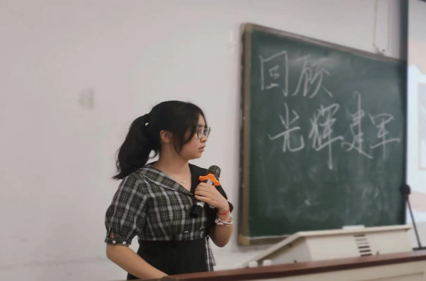 其次,伟德victor1946官网登录陈思卓同学带领大家对百年建军史进行了回顾。在回顾中,同学们充分了解了从南昌起义开始到新中国第一颗氢弹成功爆炸的艰苦而光辉的热血建军事业,展现了从无到有,从弱到强,从粗到精的建军、强军历程。在播放的视频中,大家更是感受到了中国如今强大的军事力量并牢记着落后就要挨打,忘战必有危机的警示。