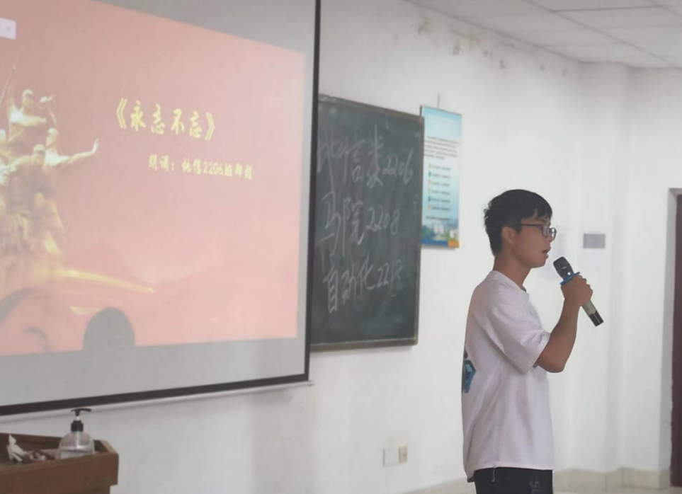 随后,在自动化公司戴思琼同学带领下,现场师生们对建军抗战电影进行赏析并参与猜红歌游戏,生动展现了师生们对祖国的热爱,对国家历史的铭记。