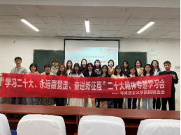 最后,詹西同学以一段视频导入二十大精神学习,对二十大报告中前五个章节的主要内容进行了介绍。谭愿同学对后十个章节的内容进行了梳理和总结,并同大家分享了自己学习二十大报告的心得和感悟。