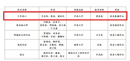 在曹清燕老师指导下,李名琛、陈苗、蒲恒屹同学携手打造的原创微电影作品《少年之心》,荣获优秀展播作品奖项。