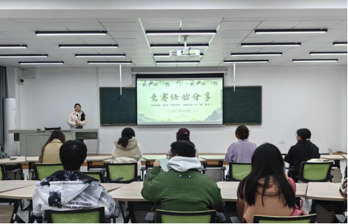 首先是来自思政2201班的常语嫣分享大学竞赛经验。她从“如何获得竞赛通知”,“如何选择合适的竞赛”,“如何组建团队”和“如何寻找队伍”等方面进行了经验分享,同时还介绍了各类学科竞赛,为学弟学妹们提供了充分的竞赛指导。她还鼓励同学们积极参加大学竞赛活动,尝试组建竞赛团队,不断积累经验,锻炼自己。