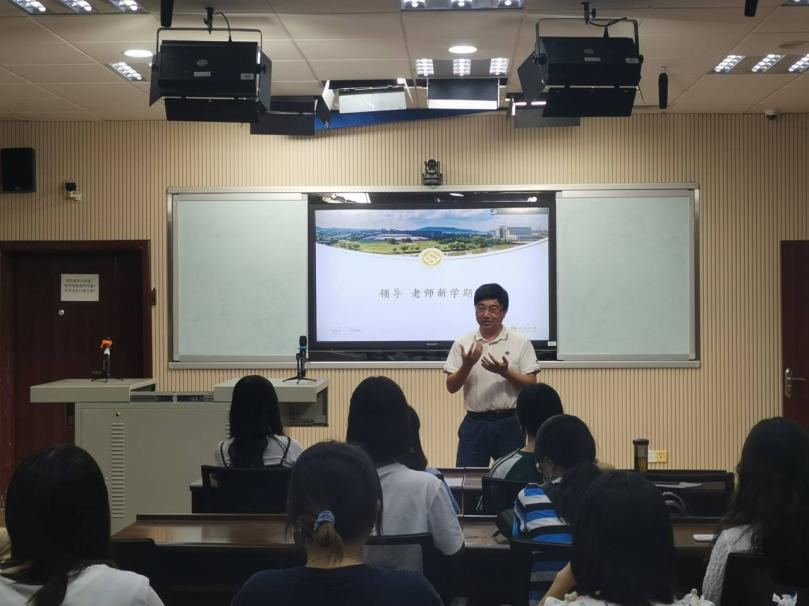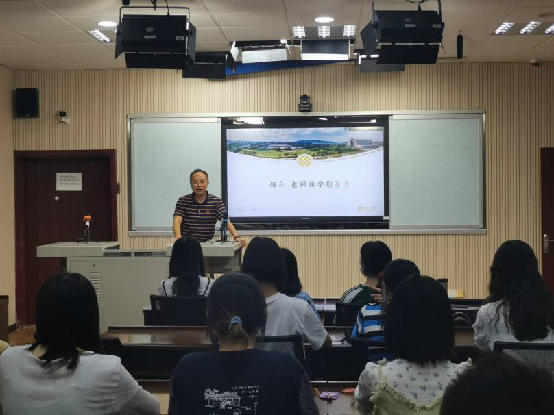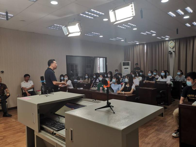 公司领导开学寄语部分,由王翔经理、王希俊书记、杨雪宾副书记发表讲话。王翔经理讲话主要分为三个内容。王翔经理首先表示时隔八个月之后,大家又重回中南的校园,重回马院的课堂。作为大家的老师,首先要欢迎大家回家。其次,在接下来,我们将进入到大二——理想主义阶段,此刻我们将有许多人生的理想以及对未来的憧憬。我们要更加珍惜大二的美好时光,让我们的学识可以充盈起来,为理想而奋斗。第三,疫情还未过去,希望大家能够注意加强身体锻炼,以一个更好的身心去面对接下来的学习生活。总之,热烈欢迎大家回家,希望大家在马列大家庭中学有所获,日有所进,祝福大家!