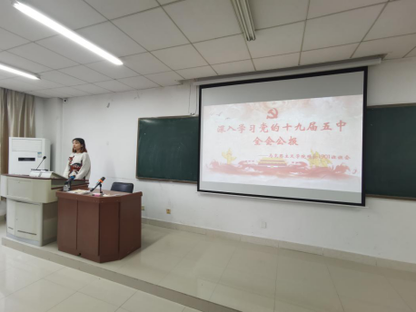 在交流环节,大家积极发表观点,焦鑫同学认为十九届五中全会是党中央在两个一百年奋斗目标的交汇点召开的一次具有重大意义的会议,我们要始终坚持和维护党的领导,增强制度自信。苏杉同学就公报会议内容以及会议过程言行比较从而概述党的理论与实践相结合的特点,袁玉勤和张维超同学分别就公报新表述提出了自己更深入的感悟体会。