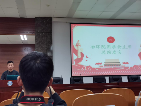 最后,冶环院的团学会主席柏楠同学进行了总结发言。他提到,时代赋予了我们青年一代沉重的使命,希望全体团支书用青春拥抱未来,用热情点燃未来,努力建设更加优秀的团支部。