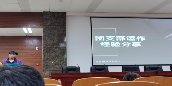 另外,来自机械1901班的六院优秀团支书代表龙鹏飞同学跟大家分享了他对团日活动的理解和流程规划,并且针对团员参与积极性、团日活动的时间交通安排等方面问题进行了具体详细地解答。