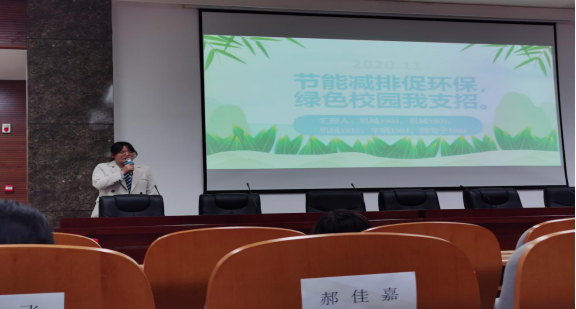 然后,各院的团支书按3~5人的小组参与节能减排有关的团日活动答辩。机电院、马院、能源院、航空院、冶环院、资生院的汇报人依次上场答辩。各位嘉宾、评委对各组的策划展示做出了细致中肯的点评和打分,最终评选出此次团支书策划展示的一、二、三等奖,机电院一队以90.24分名列第一名。