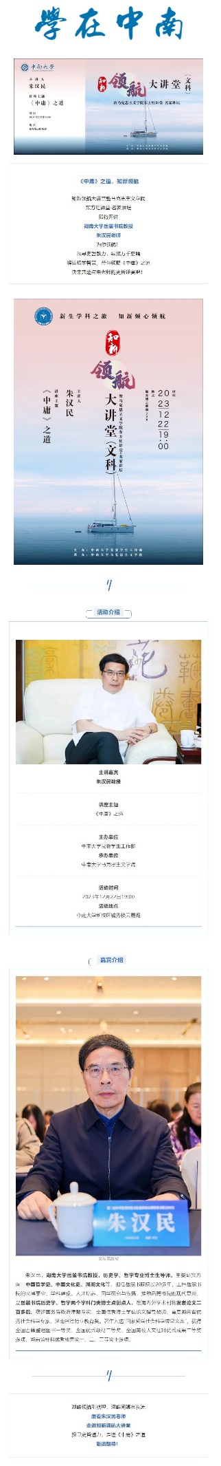 知新领航大讲堂| “百年湖湘人物”朱汉民教授带你走进《中庸》之道