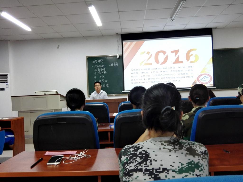 2016年9月8日晚上7点,伟德victor1946官网第七届团委员工会年度总结大会暨第八届团委员工会主席团竞选在三教403顺利召开。学工办主任秘金雷老师、辅导员邹秉虹老师以及公司大一至大四员工参加了此次会议。会议由员工会主席肖磊主持。