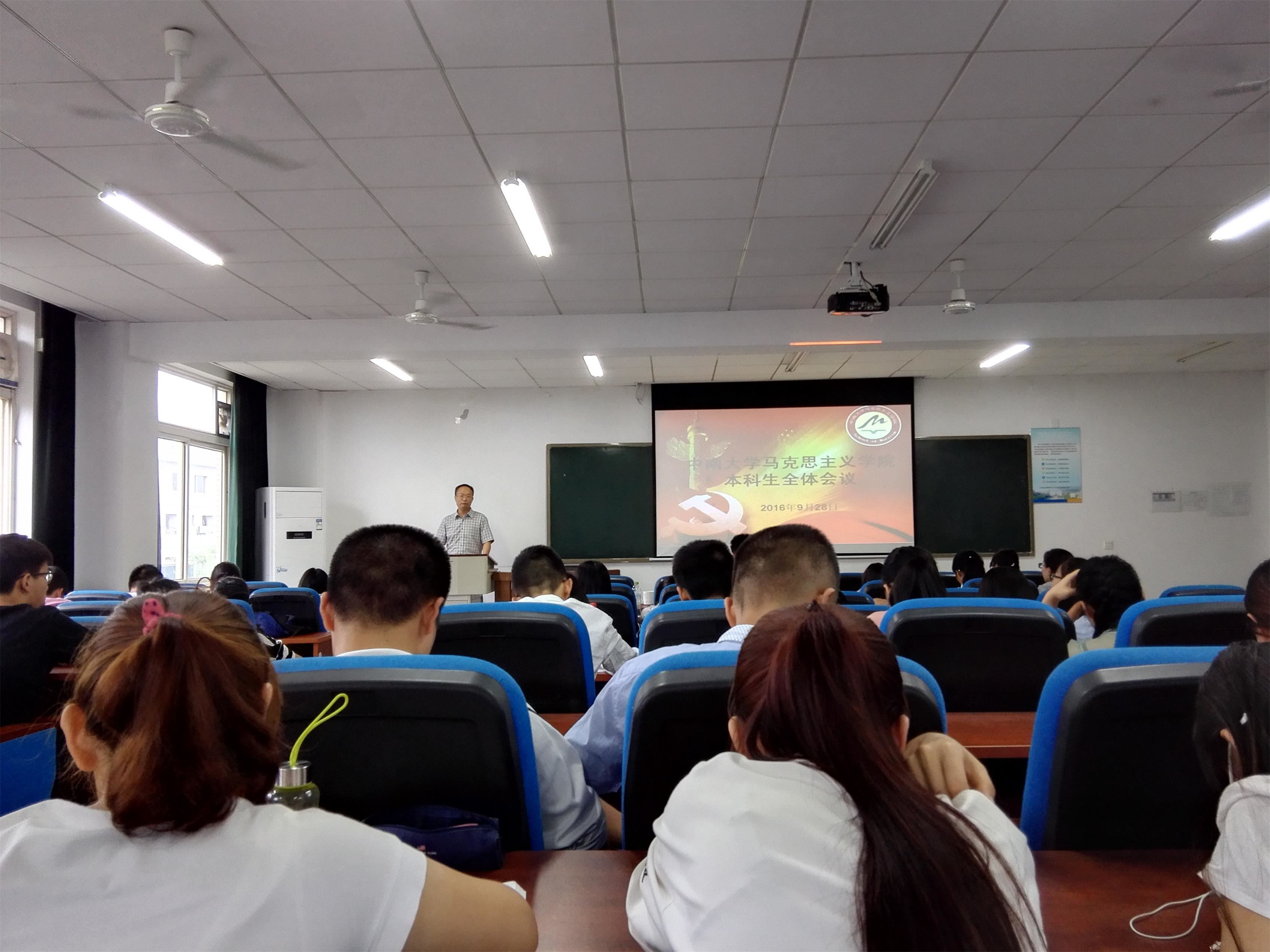 会议开始,主讲人杨雪宾副书记亲切地欢迎16级新生们,对新生们表达了美好的期愿。接着,杨书记一一点名认识第八届团学会的部长与干事们,并希望本届团学会再接再厉继续发扬全心全意为马院服务的精神,共同努力,打造更加优秀的马院。随后,杨书记向同学们讲述了本学期需着重注意的几项事情:一、马院的晚间熄灯情况虽值得表扬但同学们要继续坚持下去,保持公司高熄灯率;二、希望同学们能积极参与近期实施的早起活动,有健康的身体才能更好地投入学习与生活当中;三、鼓励各班积极举办各种活动,展现马院同学的活力与朝气;四、各班要注重学风建设,保证到课率、课堂纪律的良好,减少同学们的“低头率”,发扬马院优良学风;五、希望同学们好好学习,争取拿奖学金助学金,关注综测评分、保研的要求。 最后,由辅导员邹秉虹补充了一些公司通知,本次本科生全体会议圆满结束。