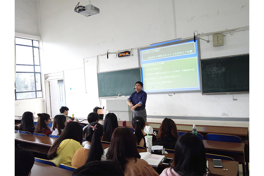 本次授课内容为马克思主义中国化与建设有中国特色社会主义经济的几个问题。课堂伊始,王教授发出提问“什么是马克思主义、中国为什么需要马克思主义(十月革命一声炮响给中国送来了马克思主义,送来了哪些马克思主义)、马克思主义为什么需要中国化”等问题引起同学们的思考。接着,就“什么是中国特色的社会主义,中国特色的社会主义‘特色’在哪”等问题指出,中国特色的社会主义特色在:1、特色的政治制度。建立了人民民主专政国家政权(国体)、建立了人民代表大会制度这个最基本的政治制度(政体)、建立了三项基本政治制度。2、特色的经济制度。建立了公有制为主体多种所有制经济成分并存的社会主义基本经济制度、建立了按劳分配为主体多种分配方式并存的社会主义初级阶段分配制度。3、特色的文化制度。建立了马克思主义为指导的社会主义核心价值体系和社会主义核心价值观。随即,王教授通过这三个“特色”为切入点深刻分析为什么我们会存在这些特色制度,它们存在的根源为何。