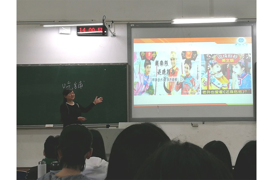 周霞老师的主讲内容为《“文化强国”的中国道路》,以越南版《还珠格格》的剧照作为课堂的开始,引起了同学们的兴趣。