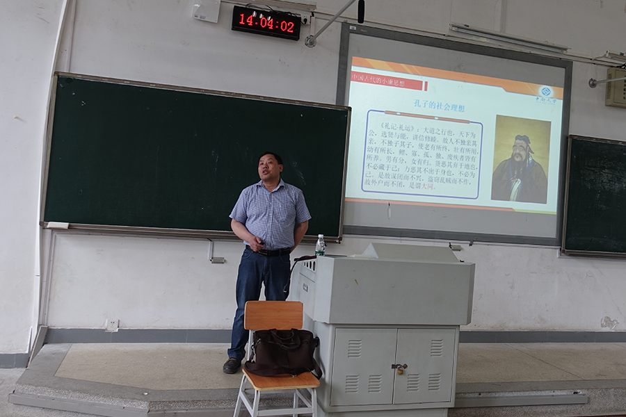首先,周老师以“全面建成小康社会与精准扶贫”作为这堂课的主题,围绕着中国古代、近代、当代中国共产党全面建成小康社会的理想和路线与精准扶贫展开讲解。周老师引用诗经中的“民亦劳止,汔可小康”介绍了小康的起源,用孔子和孟子等儒学大家对于理想小康社会的追求说明了中国古代是有小康社会这种倾向,但是儒家追求的理想社会从未实现过。在“朱门酒肉臭,路有冻死骨”的古代和近代阶级社会中,小康只是一种梦想。随后,周老师强调小康社会是在中国共产党的领导下分为三个阶段逐步实现的。当下的小康只是总体上的小康,中国共产党追求的是全面小康社会,这就与精准扶贫相联系。周老师解释到,精准扶贫最早是由习近平总书记在2013年与湖南湘西考察中提出“实事求是、因地制宜、分类指导、精准扶贫”的重要指示。“小康不小康,关键看老乡”,农村地区达到小康,就达到了全面小康。