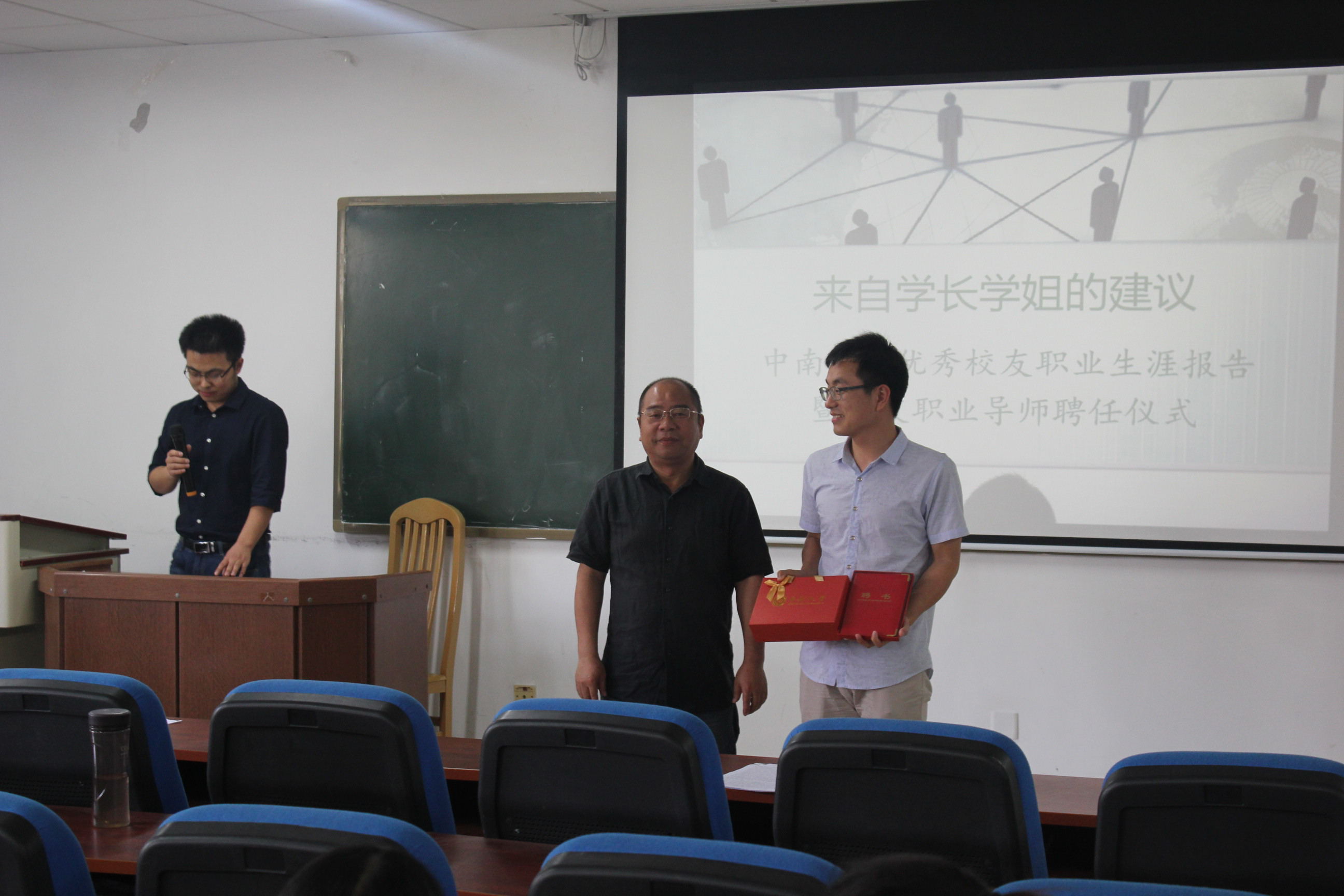5月17日下午两点半,公司在三教403举行伟德victor1946官网登录优秀员工职业生涯报告暨员工职业导师聘任仪式。此次会议的嘉宾是伟德victor1946官网登录经理张卫良教授和2015届在读博士生胡文根。会议由院学工办主任秘金雷老师主持,参会人员为伟德victor1946官网登录全体本科生和研究生。