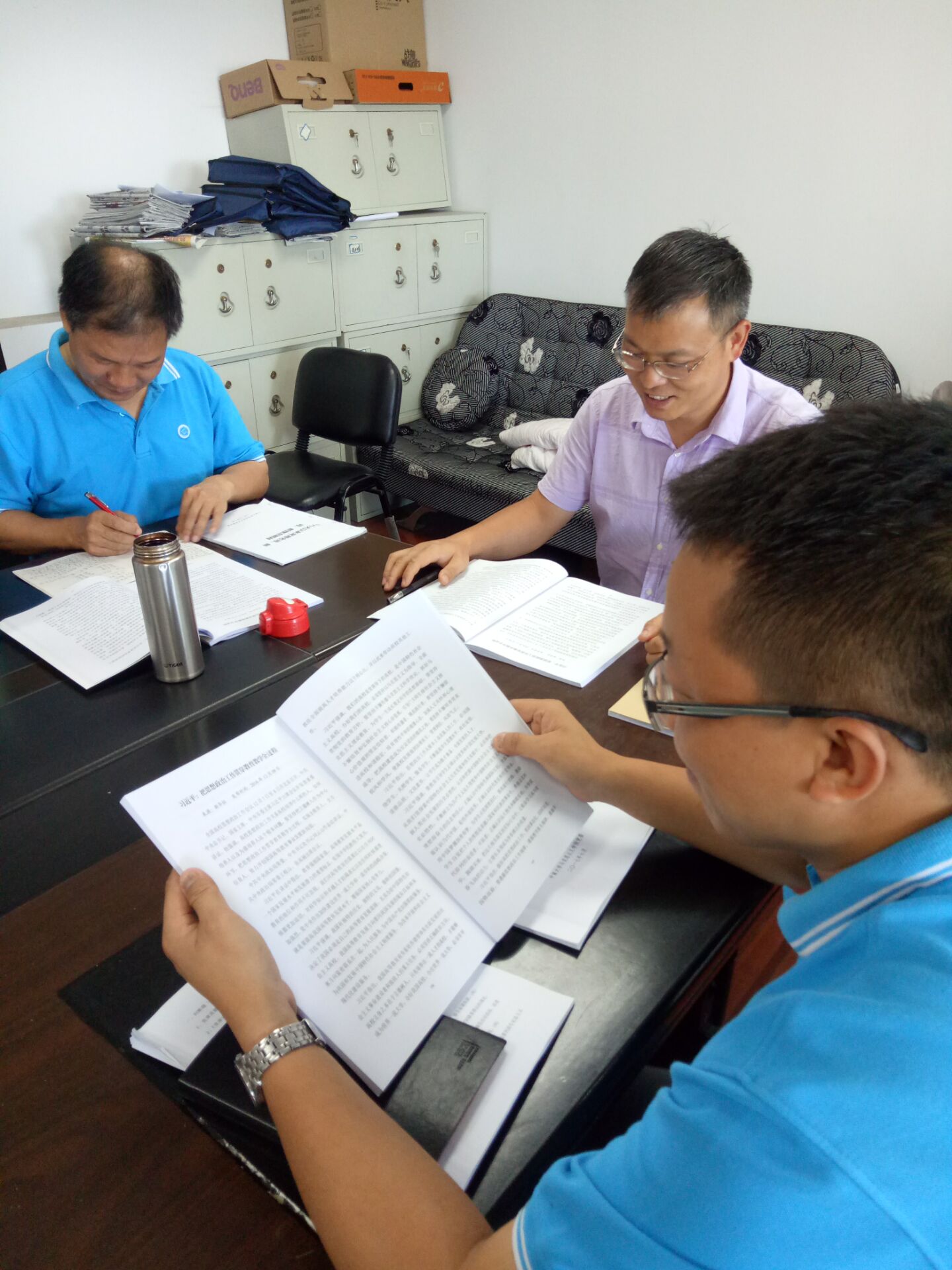 紧接着,是全体教师学习第四十四期学习资料和互相交流阶段。每位老师都进行了热烈的交流讨论,分享了自己的心得体会,加深了对于思想政治工作和意识形态问题的深刻理解。一致认为,为贯彻习近平总书记系列重要讲话的精神,把意识形态工作放在首要位置,要不断加强对习近平总书记系列重要讲话的学习,用高度的责任感“担马列大道,育时代英才”,不断加强公司的马克思主义理论研究的学术渗透力和影响力,不断巩固和夯实马克思主义思想的指导地位。