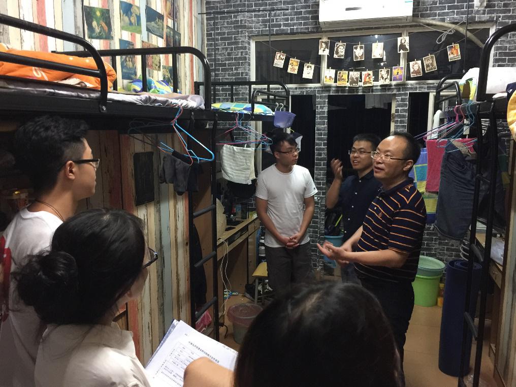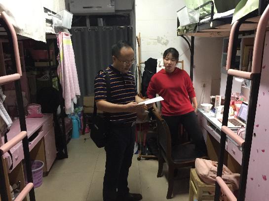 为了督促同学们早日进入新学期学习状态,检查各班入学报到情况,9月3日晚8点,院党委副书记杨雪宾老师、学工办秘金雷老师、邹秉虹老师、刘智慧老师及班导师郭鹏飞老师一同前往员工寝室查寝。