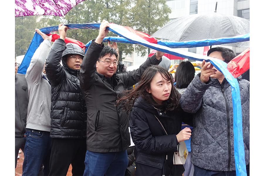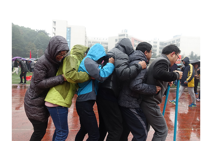 尽管当天气温骤降,风雨交加,但参与活动的老师们仍然热情高涨,啦啦队更是不亦乐乎,运动会现场,气氛紧张热烈而又趣味十足,各个比赛项目轮番进行。比赛采取团体赛积分制,经过激烈的比拼,马克思院代表队获得A组第六名的成绩。