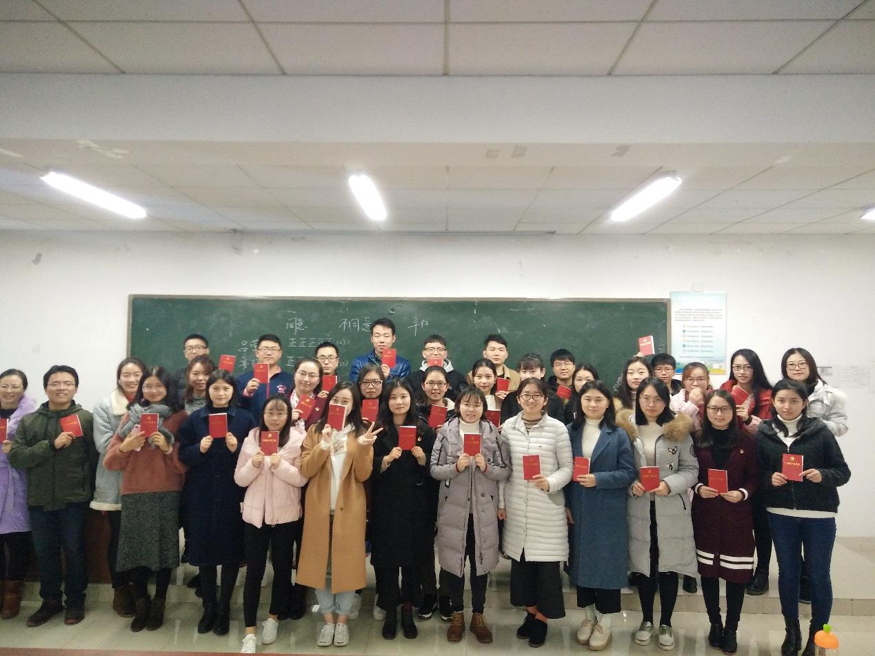 接下来,为进一步贯彻党的十九大精神,扎实推进“两学一做”学习教育制度化常态化,深入学习领悟新《党章》的内涵,2017级狄神武同志带领全体同志原原本本地学习了新《党章》,尤其就此次做了修改调整的地方做了重点提示。党章是管党治党的根本遵循,通过学习新《党章》,提升了同志们的认识,增强了党员身份的使命感、责任感。在后续交流环节中,党员同志都纷纷表示,面对今后的学习生活,要不忘初心,牢记使命,以党章党规修身律已,把新党章精神贯穿于学习、工作、生活全过程,做一名新时代的合格党员。