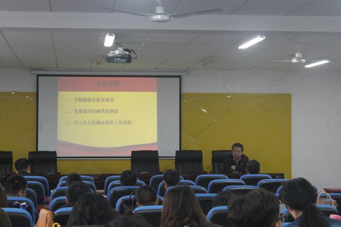 接下来秘金雷老师做了具体的任务布置,他主要从学习和生活两个方面对于研究生们的管理做了部署。第一是详细给同学们介绍了院研究生的培养方案中的要求,强调了学术研讨和学术交流、科研训练、实践教学三个环节的培养要求和实施细则。第二则是日常管理方面,强调了要将研究生的日常管理进一步制度化规范化,包括请假制度、离校备案条、在外租房、社会兼职等制度细则给同学们做了详细的说明和要求。