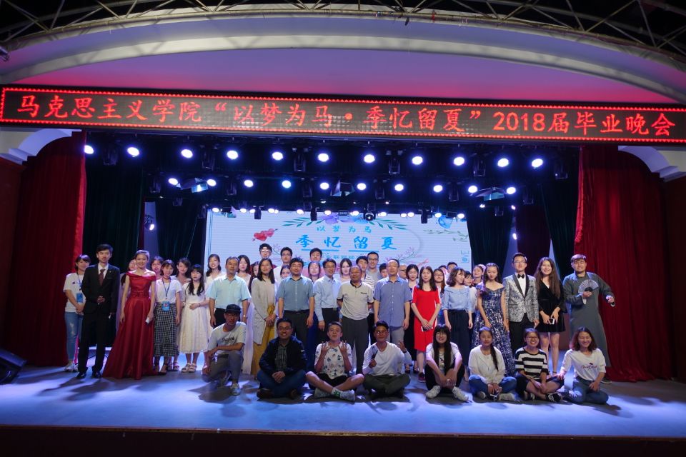 晚会伊始,公司经理张卫良为全体毕业生的深切致辞并表达了对他们的的关怀与祝福。此次晚会共准备了十个精彩的节目,每个节目的样式都有着别具一格的风采,首先是由“bling bling舞团”带来的舞蹈,小姐姐们的开场舞引来了观众们不少的欢呼声。其次,吉他社也不甘示弱,一首“易燃易爆炸”点燃了晚会的氛围,同学们挥舞着荧光棒,在屏幕上纷纷写着内心的不舍与眷恋。更有少数民族同学为大家献上的柯尔克孜舞,以及吾尔肯、特尔叶克、李林杰同学的极为有趣的以马院趣事为主题的相声表演等。可以说每位表演的同学都将自己的才艺发挥到了极致。