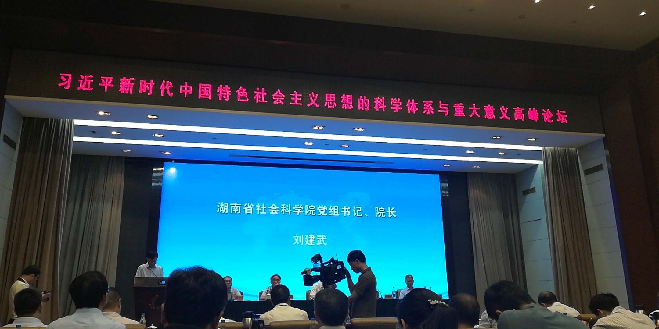 在随后召开的“习近平新时代中国特色社会主义思想的科学体系与重大意义”高峰论坛上,湖南省社科公司党组书记、经理刘建武、中国社科院马克思主义研究公司党委书记、经理邓纯东先后致辞,中共湖南省委常委、宣传部长蔡振红发表重要讲话。来自《中国社会科学》杂志社、清华大学、中国社科院、《求是》杂志社、湖南大学、湘潭大学、湖南师范大学、广州大学、湖南省社科联的9位专家先后作主旨报告。在学术研讨阶段,来自中国社科院、人民出版社、华中师范大学、西藏民族大学、浙江财经大学、武汉音乐公司、清华大学的9位学者作大会交流发言。公司刘方平老师提交的学术论文《人类命运共同体:开启全球治理新时代》入选本次高峰论坛《论文摘要集》。
