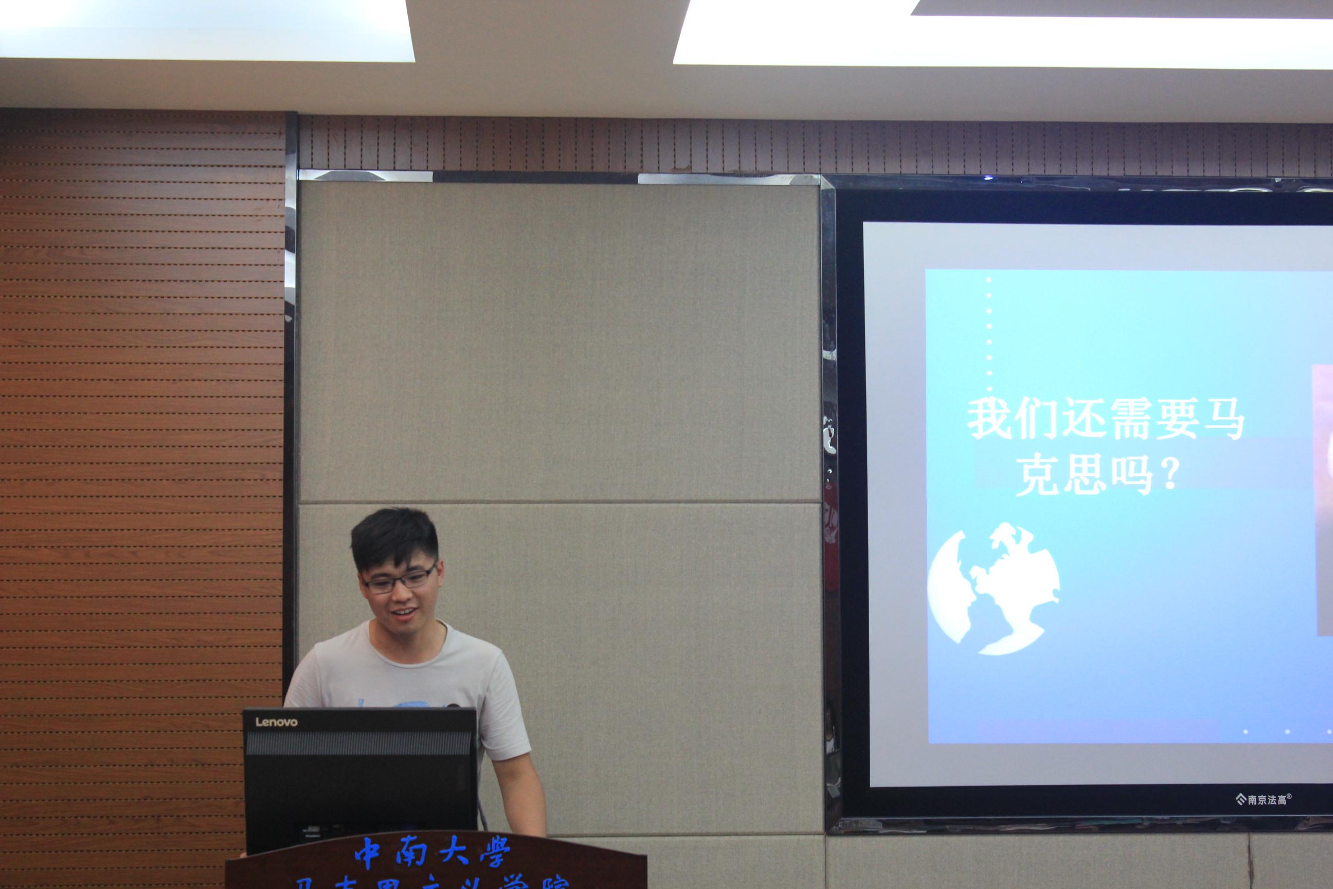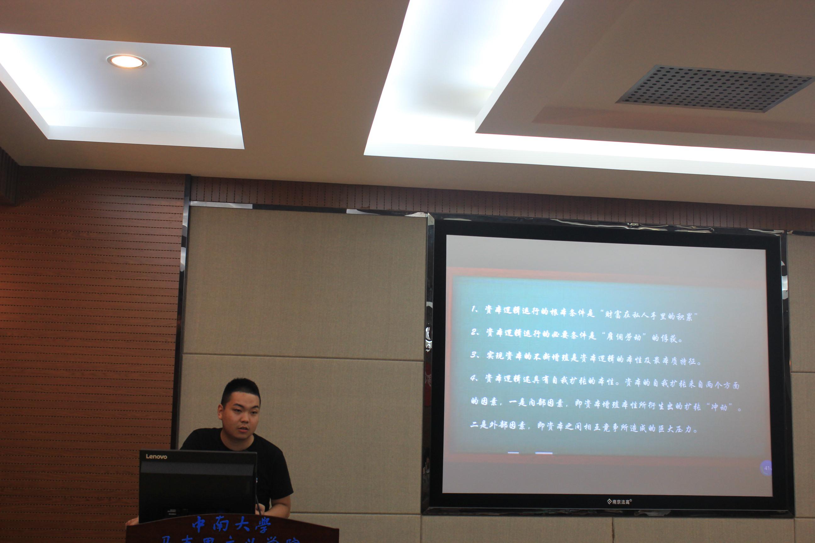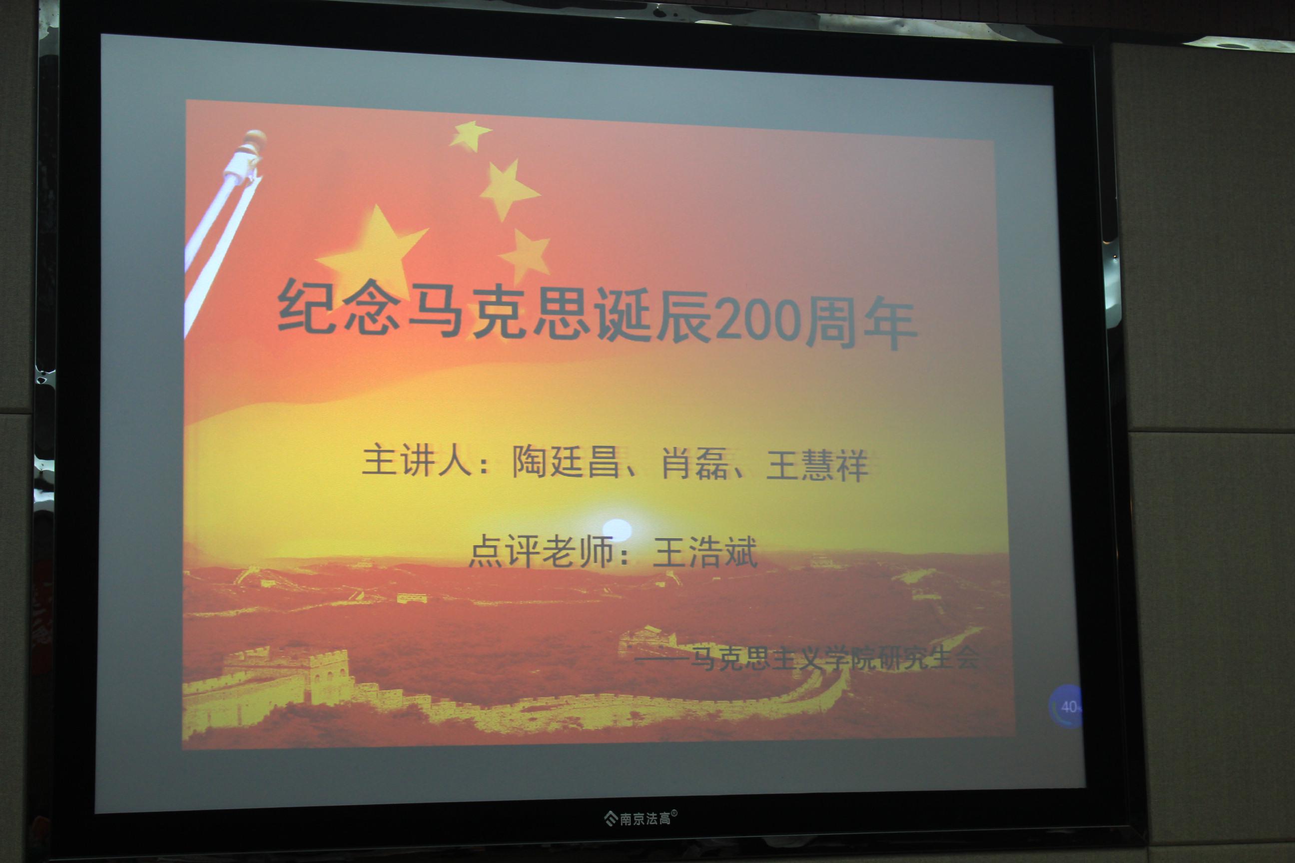 6月22日晚上19点,公司研究生东方红学术论坛之“纪念马克思诞辰200周年论坛”在三教608室顺利开展。论坛特别邀请到王浩斌教授作为点评嘉宾。公司全体研究生参加了本次论坛,活动由研究生会简淑敏同学主持。 活动伊始,由王浩斌教授为本次论坛致辞。王浩斌教授高度评价借助马克思诞辰200周年这个契机,让同学们相聚于论坛,反思马克思主义理论在当代的价值的意义,也十分开心本次论坛能够邀请到自己作为点评,同大家一起共享理论“大餐”。 接下来三位研究生分别围绕马克思主义在当代的现实意义和价值,选取独到的角度同大家进行分享。2016级研究生陶廷昌学主要从整体性角度对习近平新时代中国特色社会主义思想的三重维度——基本立场、基本观点、基本方法同大家进行了分享。2017级研究生王慧祥同学则围绕三个问题——我们今天为什么需要马克思主义、我们需要的是什么样的马克思主义、马克思主义哲学的发展历程同大家进行了探讨。2017级研究生肖磊同学则从资本的逻辑与人的逻辑的较量,带领大家《共产党宣言》进行解读。 王浩斌教授对发言的同学的讲解进行了精彩的评析,他对三位同学认真阅读马克思经典著作的学习态度给予了高度的评价。他鼓励在场的每一位同学要经常去“触摸”原著,结合社会的现实问题,得出自己的领悟。既把原著当做历史著作去读,同时又把它当做现实的著作去领会,这样才能真正做到了理解了马克思发展性和创新性。