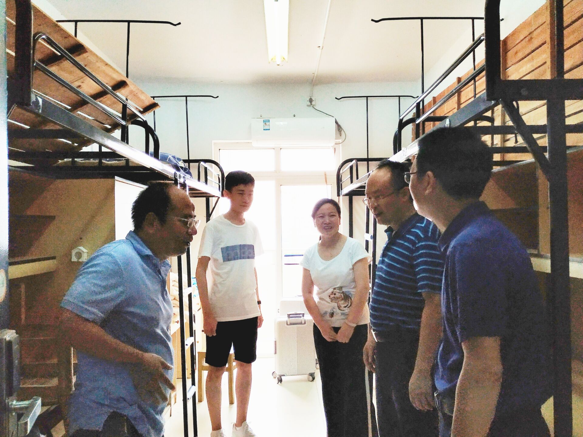 早上八点半,公司领导张卫良经理、张若飞书记、彭昇副经理、王翔副经理、杨雪宾副书记、李兰兰老师及邹秉虹、叶尔波拉提·阿尔米亚辅导员前往升华七栋及二十栋迎新点迎接新生的到来。共同走进新生宿舍慰问新生,关心新生生活情况,鼓励新生尽快适应新环境,调整好心态进入老员工活并与新生家长亲切交谈。