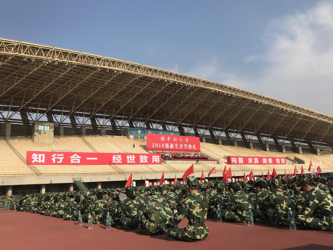 军训动员大会的召开意味着军训的正式开始,其中,田红旗院士为新生军训团授旗并讲话。她以“激扬青春梦,绽放中南人”为题,鼓励同学们汲取中南力量,绽放青春梦想,书写绮丽华章;要求全体中南人:始终把祖国需要扛在肩上,始终把开拓求索融入血脉,始终把创造创业薪火相传。她说:“推天地于一物,横四海于寸心;超埃尘以贞观,何落落此胸襟。”理想、态度、方法、行动,体现一个人的境界,也合成一股力量。