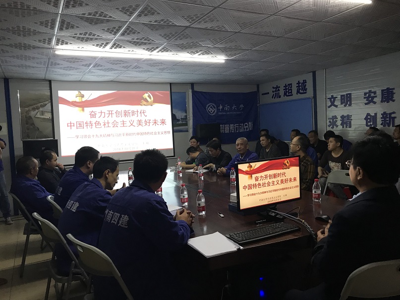 为全面贯彻习近平新时代中国特色社会主义思想和党的十九大精神,加强对农民工的人文关怀和法治宣传教育,按照伟德victor1946官网登录开展“尊法守法·携手筑梦” 服务农民工理论宣传行动方案,2018年10月31日,伟德victor1946官网登录党委副书记杨雪宾、副经理王翔教授、博士生导师贺才乐教授以及公司研究生、本科生党支部师生赴伟德victor1946官网登录新校区的湖南四建建筑工地开展“十九大精神宣讲进基层”宣传活动。会上王翔副经理和贺才乐教授分别围绕“有力开创新时代中国特色社会主义美好未来”、“建设良好家风”做了主题宣讲,众多工友来现场驻足聆听。宣讲会由公司党委副书记杨雪宾主持。