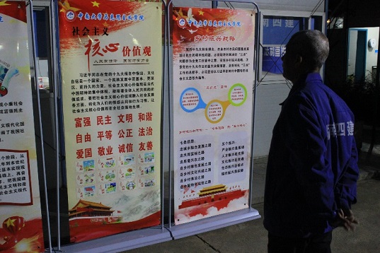 会前,马院师生在工地门口架起习近平新时代中国特色社会主义思想、党的十九大精神、社会主义核心价值观宣传展板,并就其中的热点和工友们进行了深入的交流。会议伊始,院党委副书记杨雪宾表示很荣幸受到本次宣讲邀请,这是党的十九大精神进基层的一次有益尝试,也欢迎工友们来公司进行交流。副经理王翔教授以“工”字的写法为引,以伟大领袖毛主席的经典阐释“头顶着天,脚踩着地,工人两个字结合在一起,就是一个天字。这个天,是天下的天。工农大众,就应该是这天下的主人”拉近了与四建工人的距离。随后重点宣讲十九大大会主题、主要成果等基本内容。其中在“新时代”问题上结合“三个意味着”“五个时代定位”“十方面成就“介绍了“新时代从何而来?”这一主题。从主要矛盾的变化、中国国际关系、国际地位、人民思想道德水平和生活水平的变化解释了“新时代有什么特征?”这一主题。在“新时代我们要做什么?”这一主题上,副经理王翔教授从新时代的新使命、新目标出发结合生活实例,例如:洞庭湖污染防治、工人生活水平的提高阐发了新时代提出的六个方面总要求以及八个方面的重要任务。其中着重强调了党员同志要在思想上入党,在日常工作中坚持初心做人民子弟兵。并衷心的祝愿湖南四建全体工友生活幸福身体健康。受到了工友们的热情鼓掌。