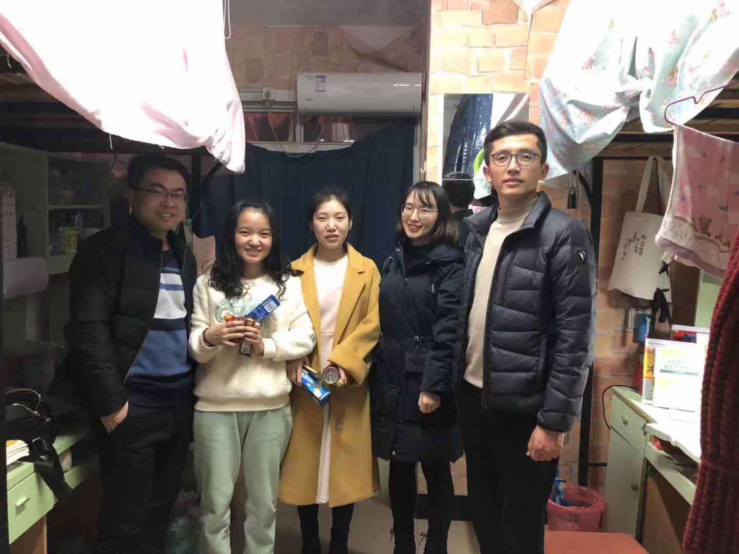 为鼓励公司考研员工以饱满的精神状态迎接考试,帮助他们树立考研信心,12月20日晚上九点,公司本科生辅导员秘金雷、邹秉虹老师,预科生辅导员叶尔波拉提老师一行人到员工宿舍看望慰问考研员工,并送上考研祝福和慰问小礼物。