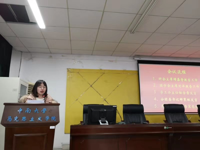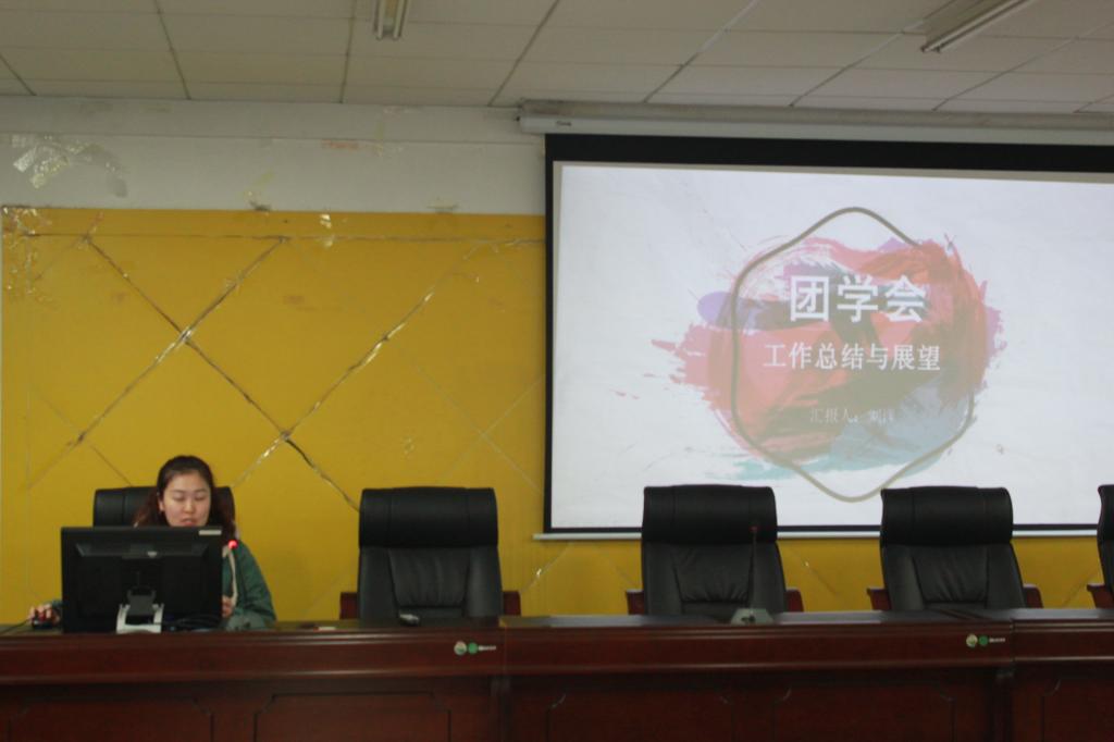 员工会主席刘洋总结了上学期团学会在学风建设、文化素养等方面取得的成绩与效果,精彩的汇报赢得同学们的阵阵掌声。