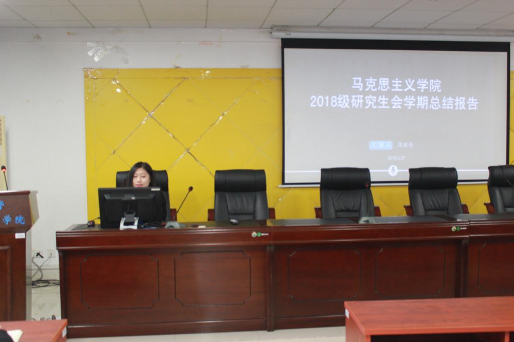 会议后半段,研会主席隋嘉奇向在座的同学们汇报了2018年研究生会在思想引领、组织建设、心理健康等几个方面的主要工作,并就研究生会在本学期将要开展的工作进行了简要说明。