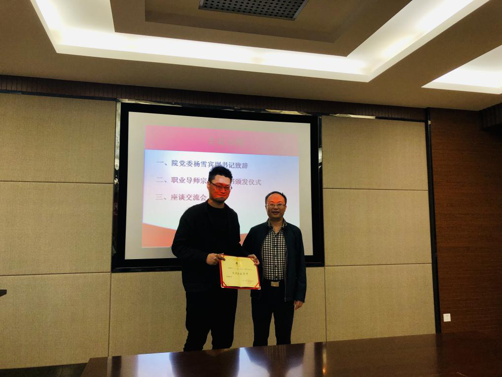 之后,杨雪宾书记向宗书尧学长颁发了伟德victor1946官网登录职业导师聘书,大家报以热烈的掌声。