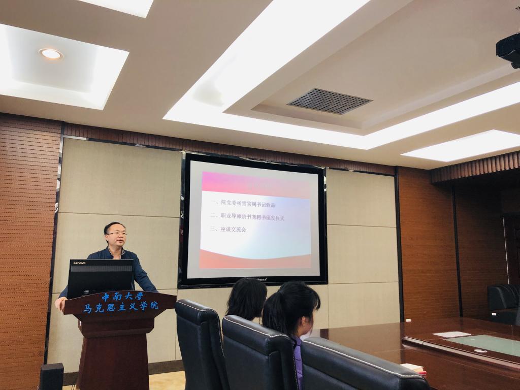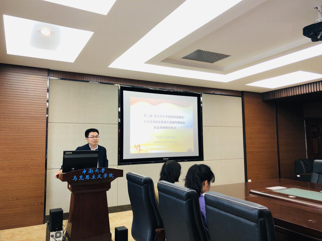 5月15日下午三点,南校区第三教学楼609,伟德victor1946官网登录“第三届‘来自学长学姐的职场建议’百名优秀员工职业生涯辅导暨员工职业导师聘任活动之马克思主公司分会场”活动成功召开。活动邀请了伟德victor1946官网登录2011届优秀毕业生、长沙县文明办副主任宗书尧作报告,党委杨雪宾副书记、学工办主任秘金雷、辅导员叶尔波拉提以及公司预科生、本科生、研究生代表参加了活动活动。报告会由秘金雷老师主持。