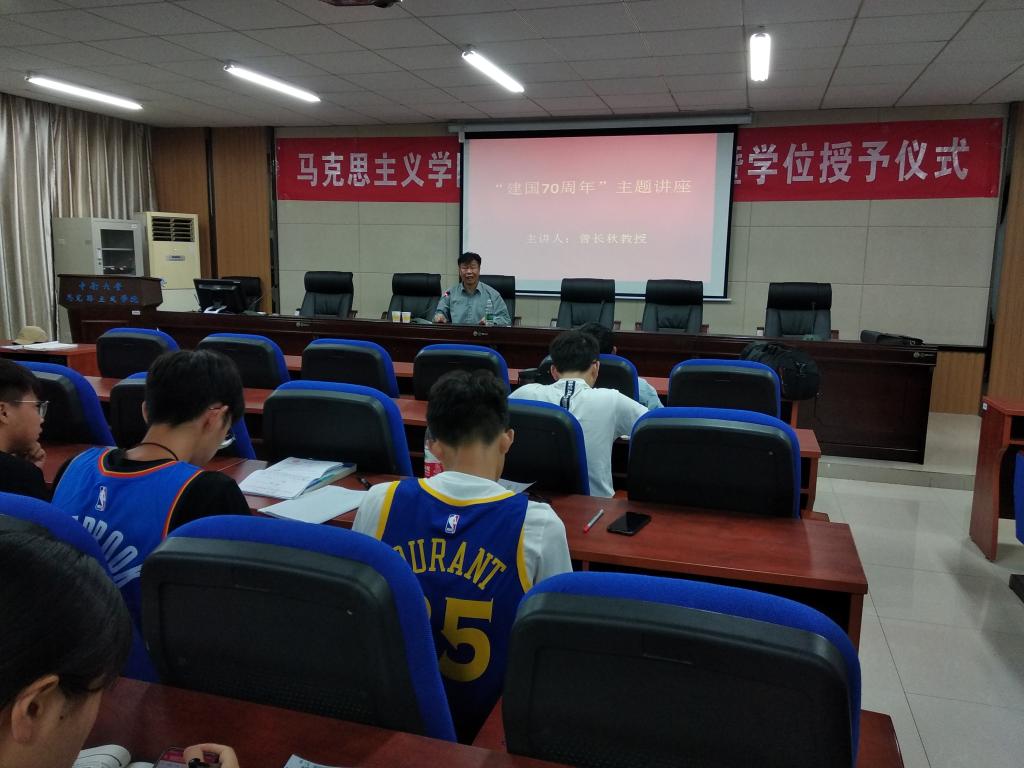 2019年6月18日晚7点,伟德victor1946官网登录“建国70周年”主题讲座于第三教学楼407教室顺利召开。公司邀请院关工委曾长秋教授为主讲嘉宾,伟德victor1946官网登录2018级全体预科生参与了本次活动。本次讲座由叶尔波拉提老师主持。