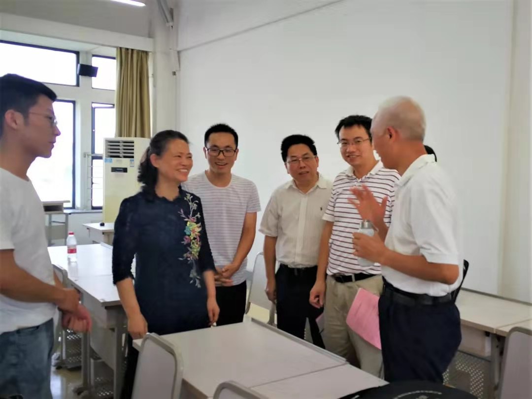 9月9日上午,董事长田红旗、副董事长陈立章、本科生院经理何军、教学督导肖铁肩一行来到新校区教学楼,现场查看督导公司青年教师胡文根《行政管理学》课堂教学情况。