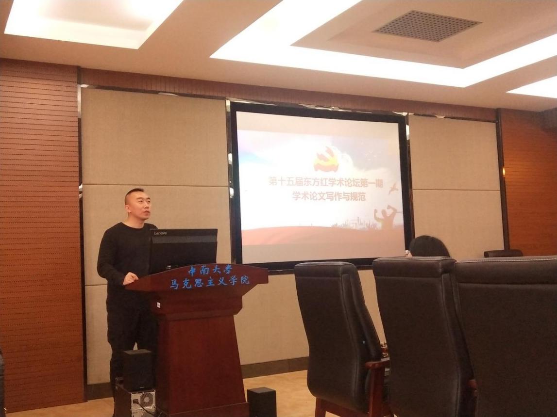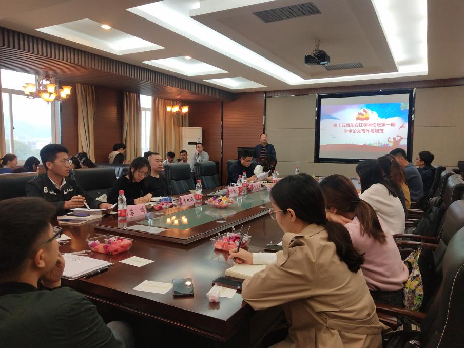 10月23日下午三点,公司第十五届“东方红学术论坛”第一期在三教609室顺利开展,论坛主题为“学术论文写作与规范”,邀请到马克思主义基本原理中心刘临达老师、2018级博士研究生何秋娟和2018级硕士研究生苏鹏担任论坛主讲人。公司党委杨雪宾副书记、学工办主任秘金雷老师、辅导员邹秉虹老师、陈力瑞老师以及公司本科生、硕士生、博士生等参加了此次活动。论坛由研究生会主席徐茂盛同学主持。