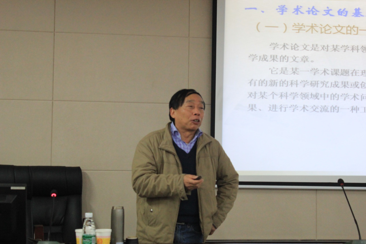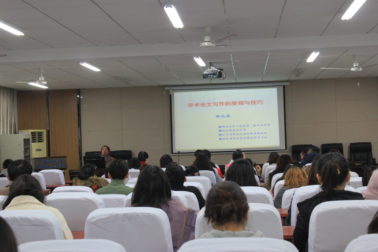 柳礼泉教授以自己在教学科研中遇到的典型事例为切入点,深入浅出的对学术论文的分类与特点进行分析,随后对自己的研究成果进行简单介绍,提醒大家在选题时要注意的原则,指出选题既要具有科学性同时也要利于研究的展开。柳教授指出“文好题一半”,确定选题的具体方法可以是广泛阅读文献资料,从而获取创新灵感、发现问题,也可以尝试突破学术“空白处”或“空缺处”,还可以进行综合比较与社会调查亦或是进行材料提取、拟想验证。这些方法各有所长、皆可使用。所谓“磨刀不误砍柴工”,柳教授特地对如何正确的梳理与使用文献资料进行了详细讲解,并以自己的员工们互改论文的经验告诉大家“论文都是改出来的”,要不厌其烦的修改与认真查证。针对毕业生正面临的学位论文写作,柳教授也提出了自己的看法,并就学位论文结构写作规范、论文题目的拟定、作者署名、摘要、关键词、引文、结尾的写作、参考文献的规范表述等方面做了详细的讲解。讲座的最后,柳教授以编辑的眼光跟大家分享提高学术论文投稿的命中率的方法。