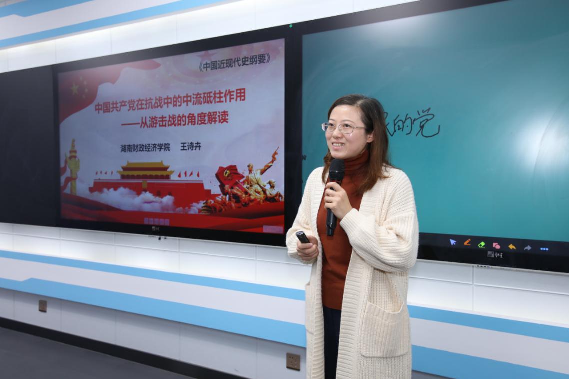 此次年会还邀请了2019年荣获教育部思政课教学竞赛一等奖和二等奖的三位优秀青年教师进行现场说课、教学展示和参赛经验介绍。湘潭大学的熊慧老师以《世界观望中国,我们凭什么自信?》为题,从站起来、富起来和强起来三个方面回顾了中国近代以来的发展历程,展示了思政课教师的信仰和情怀,立意深远,史料详实,富有说服力。湖南财政经济公司的王诗卉老师从游击战的角度解读中国共产党在抗战中的中流砥柱作用,娓娓道来,说理透彻,生动活泼。湖南第一师范公司的谭凯老师结合自身经历分享了参加教育部思政课教学竞赛的心得、体会和相关技巧,并介绍了国内名校参赛的有关经验,让在场的与会代表直呼“脑洞大开”。公司充分利用智慧教室,联合湖南超星公司,对三位优秀青年教师的教学展示进行了现场直播,与未能亲临现场的全省“纲要”课教师分享了精彩的教学展示活动。