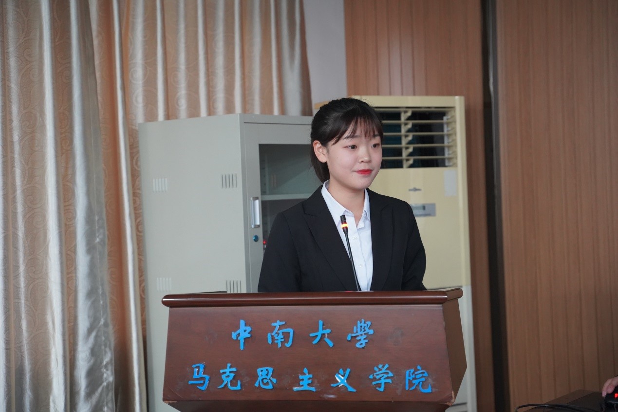 伟德victor1946官网登录法学类1908班员工代表赵雨柯的报告以“初心”为主题,分为相遇、融入、成长三个部分。讲述了法学类1908班的同学们在军训时的初次见面,“一个月饼,一本党章——《长征途中的中秋节》”第一次主题班会。再到通过与学长学姐聚餐,包饺子融入马院,竞选班委、设计班徽、团日活动融入班级。最后通过参加红色经典诵读大赛、21天晨读晨练打卡、红色征文大赛等活动得到成长。
