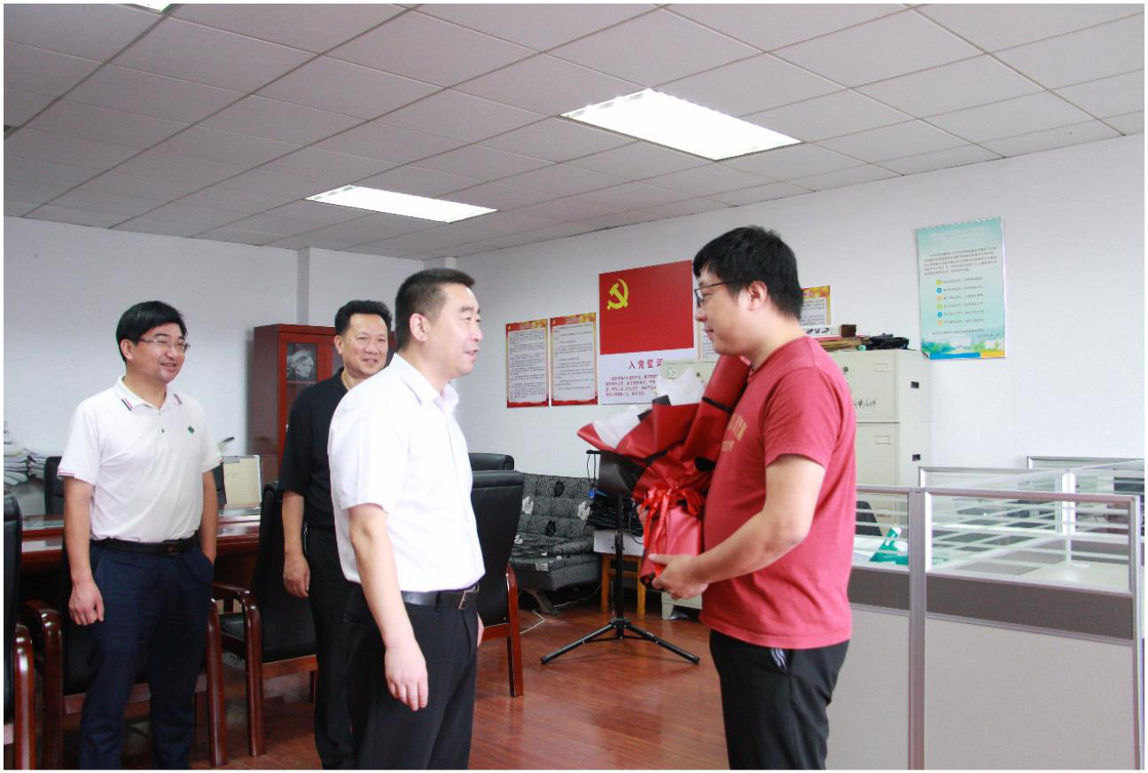 校办副主任向英明、人事处副处长文灿,公司党委书记王希俊、经理王翔、党委副书记杨雪宾⼀同参与慰问。