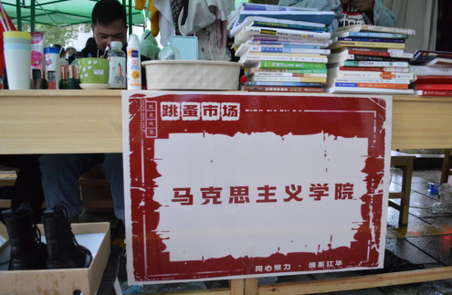 10月15日早上8时左右,公司团学会成员展开跳蚤市场摊位摆放的准备工作,阴雨天气也无法阻挡同学们的热情,摊位布置工作紧张有序的进行,公司摊位摆放整齐,物品分门别类,错落有致。小到指甲油,钥匙链,大到电脑包,木吉他,床上书桌,公司学子捐献的物品既有日常生活用品也包含各种书籍,覆盖校园生活衣食住行,兼具实用与美观功能。