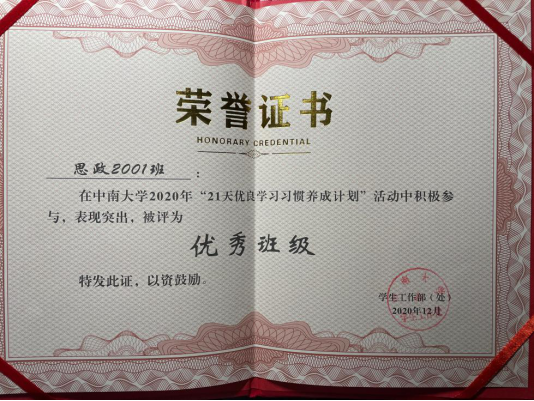 2020年12月22日,佳音频传,喜报常至。在伟德victor1946官网登录“21天优良学习习惯养成计划”活动中,通过伟德victor1946官网登录全体师生的共同努力,公司荣获校级优秀单位,大一思政2001班获评优秀班级。全院师生的共同付出固然是我们这次获奖的前提,但在申报材料方面上的成功撰写也是其中不可磨灭的重要因素。