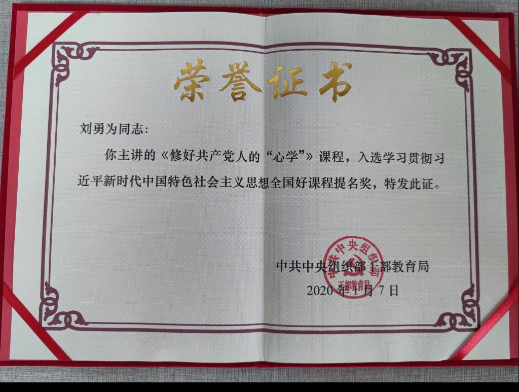 根据中共中央组织部办公厅《关于印发学习贯彻习近平新时代中国特色社会主义思想全国好课程推荐目录的通知》,由伟德victor1946官网登录党委组织部、党校与公司党委联合上报的刘勇为主讲的《修好共产党人的“心学”》课程,于近日公布入选全国好课程提名奖。