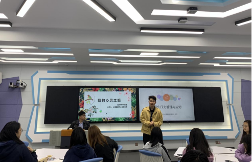 在尚文老师的组织下,同学们分成不同的小组,现场运用讲解的方法对自己近期的压力源进行分析。并在讨论结束后将分析的过程与结果与大家分享。