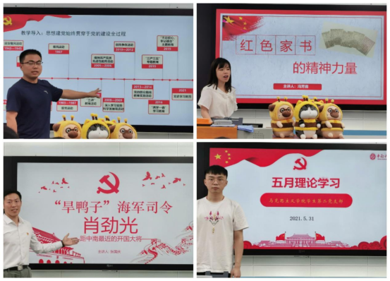 会议第二项,微党课分享。支部书记秘金雷,党员冯芳露、张国庆同志分别以《思想建党 伟大创造》、《红色家书的精神力量》、《“旱鸭子”海军司令肖劲光》为主题给全体党员带来了一堂堂思想深刻、内容鲜活、精彩纷呈的党史课。听后意犹未尽,心潮澎湃,自豪感骄傲感倍增,心灵深感震撼,是一次境界的升华、灵魂的洗礼。