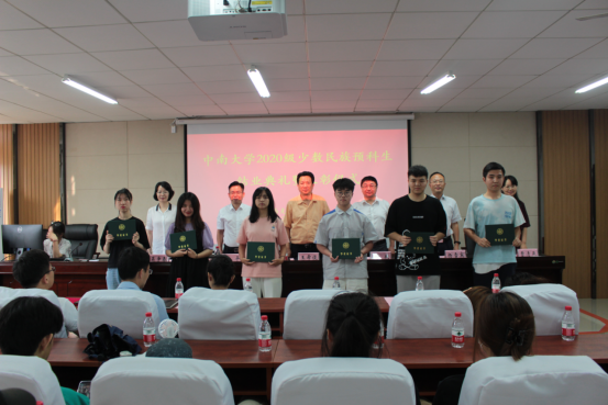 典礼结束后,领导老师分别与各班员工合影留念。祝愿2020级少数民族预科生奋发有为、胸怀家国情怀、努力为实现中华民族伟大复兴中国梦奉献青春力量。