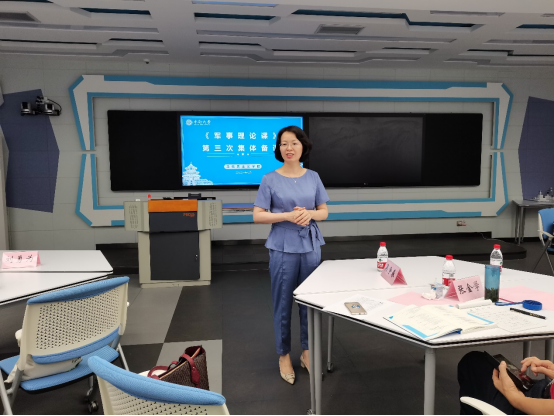 专家一致认为,本次集体备课和教学法培训活动组织较好,颇有成效。《军事理论》是大一新生进入大学后系统学习的第一门课程,授课教师们一定要以高度认真负责态度备好课、讲好课,强化价值引领,增强老员工的国防意识,厚植老员工的爱国主义情怀。试讲教师龚珊感叹道,这次备课是一次“进京赶考”,未来的员工是“出卷人”,自己是“答题人”,幸亏有这么多专家、老师帮忙“答题”,才给了自己上好这一门课的信心。