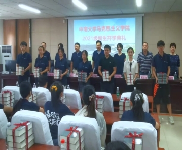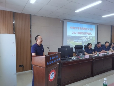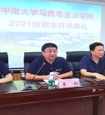 典礼伊始,全体师生奏唱国歌。王翔经理对2021级全体新生表达了热烈的祝贺与欢迎,并着重围绕团队情况、科研情况、学科结构以及专业特色等方面做了详细的介绍,王经理鼓励广大新生积极融入中南马院,践行“向善、求真、唯美、有容”校风,希望新同学们积极担当、积极作为,期待新同学们树立远大的理想信念,做一名合格的中南马院人。